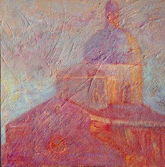 Duomo nella nebbia, olio e acrilico su base sabbiosa (legno o tela) 60 x 60 cm