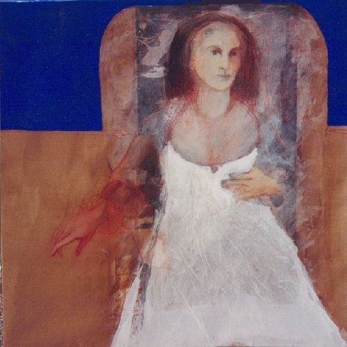 Donna che indica, Olio e acrilico su tela, tecnica mista e materica,100 x 100 cm